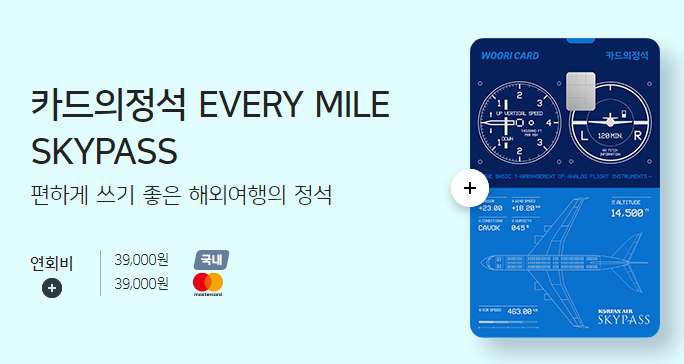 우리 카드에서 출시한 "카드의 정석 EVERY MILE SKYPASS"입니다.