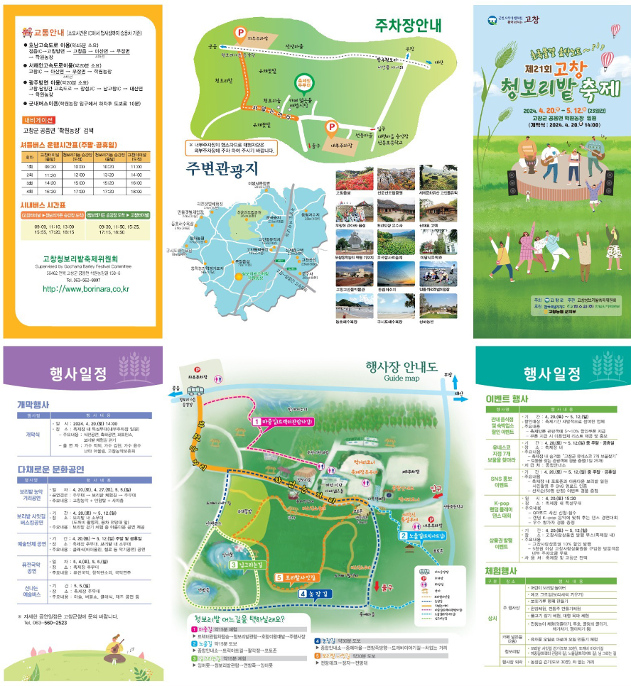 청보리 축제 기간동안 다양한 축제와 지역특산품 판매등도 진행하고 있으니 봄이 끝나기 전, 얼마남지 않은 청보리를 즐기러 고창으로 떠나보시면 어떨까요.